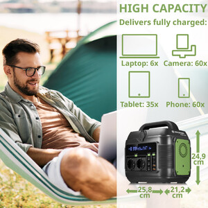 Întotdeauna cu suficientă energie în deplasare: acest lucru este posibil cu ajutorul bateriei mobile Power Bank 600 Watt de la BRESSER. Indiferent dacă sunteți în excursie cu cortul, lucrați în grădină sau aveți o pană de curent acasă – cu ajutorul numeroaselor opțiuni de conectare, puteți încărca și utiliza aproape toate aparatele electrice obișnuite în mod stabil și sigur. Ideal pentru laptopuri, instrumente muzicale și altele: datorită ieșirii de 230 volți și 600 wați de înaltă calitate , cu o undă sinusoidală pură, puteți alimenta cu energie electrică chiar și instrumentele sensibile. Pentru aceasta, în acumulatorul de energie de înaltă calitate este integrat un acumulator puternic de 576 Wh, 40 Ah/14,4 V, cu ioni de litiu. În plus, stația de alimentare mobilă se distinge de generatoarele de curent cu motoare cu ardere prin funcționarea silențioasă și ecologică. Cu un panou solar disponibil opțional (nu este inclus în livrare), puteți utiliza chiar și energia soarelui pentru sursa dvs. de curent mobilă. Încărcarea directă simplă prin adaptor retea sau panou solar se poate realiza prin mufa de intrare DC.