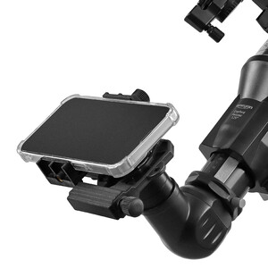 Poate că cea mai interesantă parte a setului de accesorii este adaptorul pentru smartphone. Cu ajutorul acestuia, puteți fixa propriul telefon mobil direct pe ocular și astfel puteți face fotografii cu ceea ce observați. Imortalizați peisajele craterizate ale Lunii sau fotografiați Jupiterul cu lunile sale. Declanșatoarea telecomandă Bluetooth inclusă în pachet vă asigură fotografii fără mișcări. Împărtășiți fascinația dvs. pentru cerul înstelat cu familia și prietenii. Nu poate fi mai simplu de atât.