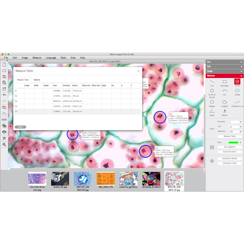 - O versiune completă a software-ului Motic Images Plus oferă toate instrumentele necesare pentru cuantificare, măsurare, etichetare, predare, învățare etc.