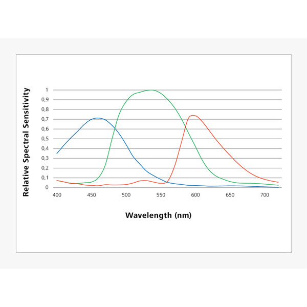 - Sensibilitate spectrală: cu filtre de blocare IR aprox. 400 nm până la 720 nm