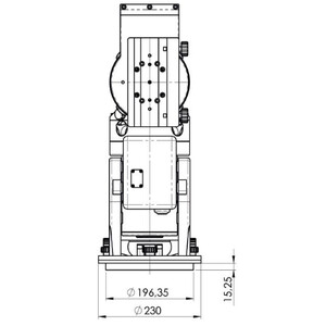 - Datorită designului azimutal, este necesar un rotitor al câmpului de imagine pentru astrofotografie. Cu un rotitor de câmp de imagine (de exemplu, de la PlaneWave IR90 sau Gemini Optec), astrofotografia "clasică" este de asemenea posibilă cu precizia obișnuită de 10 microni.