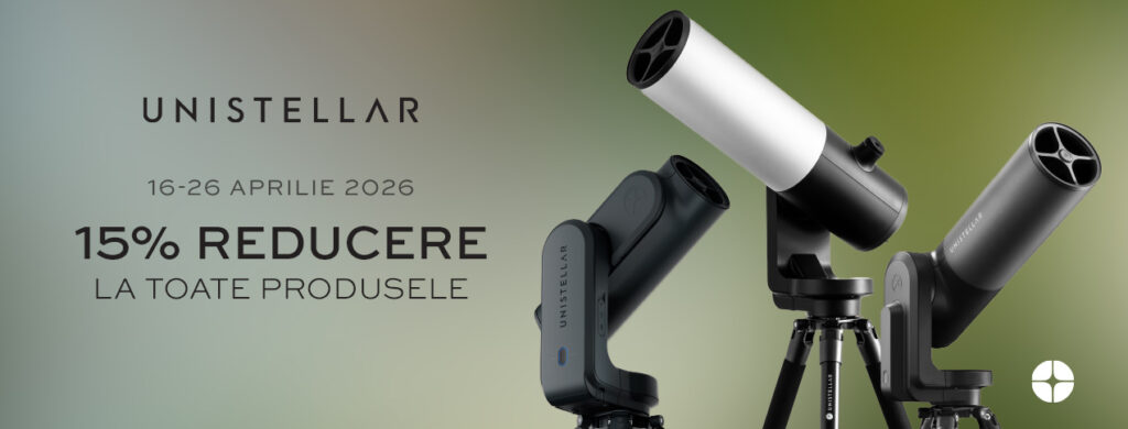 Între 16-26 aprilie 2026, producătorul francez Unistellar oferă o reducere de 15% la toate produsele (telescoape inteligente și accesorii).
