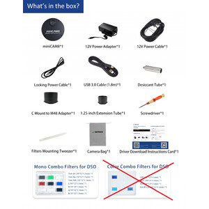 miniCAM8 se bazează pe senzorul Sony IMX585 de 8 MP și dispune de un sistem complet de răcire termoelectrică, care poate atinge o diferență de -45 °C față de temperatura ambiantă, precum și o roată de filtrare integrată cu 8 poziții pentru fotografii LRGB și cu bandă îngustă.