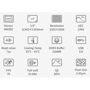 Cei care doresc să realizeze imagini în infraroșu cu lungime de undă scurtă – fie în astronomie, fie în domeniul industrial-științific – vor găsi aici un instrument performant.