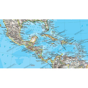O secțiune suplimentară a hărții prezintă geografia fizică a celor două continente, oferind astfel o imagine de ansamblu excelentă.