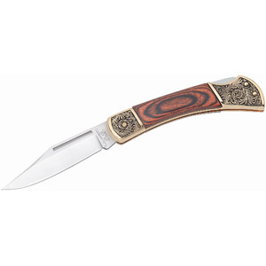 Lemnul Pakka de culoare închisă se armonizează foarte frumos cu feroneriile ornamentate. Lama de somn a acestui cuțit de buzunar Herbertz este fabricată din oțel inoxidabil AISI 420. Un sistem clasic de blocare a spate asigură siguranța în timpul utilizării.