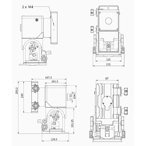 - Suportul de montare permite utilizarea șinelor prismatice conform standardului Vixen sau Losmandy. Astfel, aproape orice telescop poate fi montat.