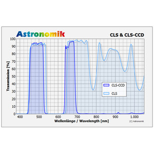 Filtrul CLS CCD mareste contrastul dintre obiectele astronomice si fundalul cerului. Datorita intervalului de transmisie foarte larg poate trece de fitru o parte insemnata a luminii, stralucirea stelelor ne fiind afectata. Acest filtru este optimizat pentru a bloca cat mai multa lumina artificiala si pentru a permite trecerea a cat mai multa lumina provenita de la obiectele ceresti. Filtrul poate fi utilizat cu telescoape de toate dimensiunile care au rapoarte focale cuprinse intre 1:2 si 1:15.