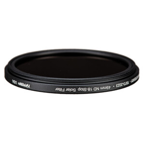 Acest filtru solar cu densitate neutră de la Tiffen, în ediție specială pentru aniversarea de 50 de ani, este un filtru de înaltă calitate cu un factor de filtrare de 262.144x, care reduce expunerea cu 18 trepte de diafragmă. Densitatea sa de 5,4 întunecă întreaga imagine, permițând astfel fotografii cu o deschidere mai mare a diafragmei sau un timp de expunere mai lung, reducând în același timp riscul de supraexpunere. Astfel, veți obține fotografii solare mai detaliate decât în condiții normale.