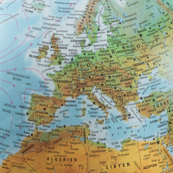 Depășind imaginea prototipică a globului, în care sfera este suspendată într-un meridian, modelul Full Circle se remarcă prin designul inovator al suportului. Datorită formei subțiri a axei din aluminiu de înaltă calitate, sfera pare să plutească literalmente deasupra inelului elegant din lemn de arțar deschis la culoare. Înclinarea axei corespunde, desigur, înclinării reale a axei Pământului.