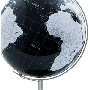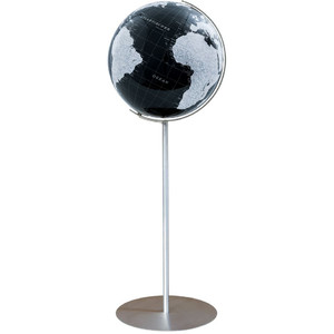 Meridianul și piciorul sunt din crom lucios, globul din sticlă acrilică. Harta este iluminată și neiluminată, cu denumirile politice.
