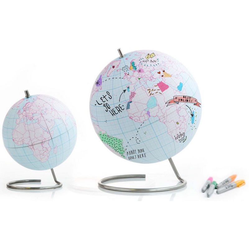 Ai făcut recent o călătorie în jurul lumii și vrei să le arăți tuturor unde ai fost? Sau ești în căutarea unui cadou pentru un globetrotter? Atunci acest glob este exact ceea ce îți trebuie! Globul poate fi scris pe el și este prevăzut cu hârtie specială, în carouri, care face și mai ușoară personalizarea lui după propriile dorințe. Poți să-l pictezi, să-l decorezi sau să faci schițe pe el, totul este posibil.