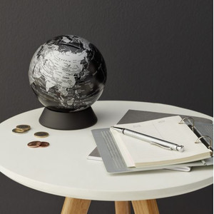 Cei care planifică o călătorie lungă nu vor pierde din vedere destinația. Globul pământesc stă liber pe un soclu simplu și poate fi deschis de jos cu un sistem de închidere cu șurub.