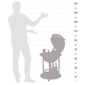 Glob mare cu diametrul de 40 cm si design clasic Zoffoli cu cabinet pentru bauturi. Acest glob poate stoca pana la 9 sticle si 2 sau 3 sticle in emisfera sudica in design antic din secolul al 16-lea. Destinat atat spatiilor mari cat si mici, acest glob in finisaj deosebit va aduce o nota clasica casei dumneavoastra. Picioarele din lemn solid de castan cu ilustratii deosebite compun suportul. Globul se roteste complet in meridian cand este deschis sau cand este inchis. Il puteti muta usor datorita rotilor sale.