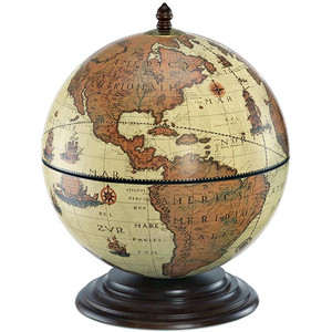 Acest mic glob de masă pentru minibar are în interior un compartiment pentru 9 pahare și 2-3 sticle. Cartografia hărții este o replică din secolul al XVI-lea.