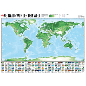 Pământul este frumos și pe toate continentele planetei noastre se găsesc locuri fascinante, create de natura și care uimesc oamenii de mii de ani. Cascade uriașe, ape și țărmuri cu culori ciudate, deșerturi aparent nesfârșite sau formațiuni roci și plante bizare. Pe tot globul există mii de astfel de locuri și regiuni minunate. Această hartă a lumii prezintă o mică selecție de 99 de minuni ale naturii cu totul speciale de pe cele șase continente locuite.