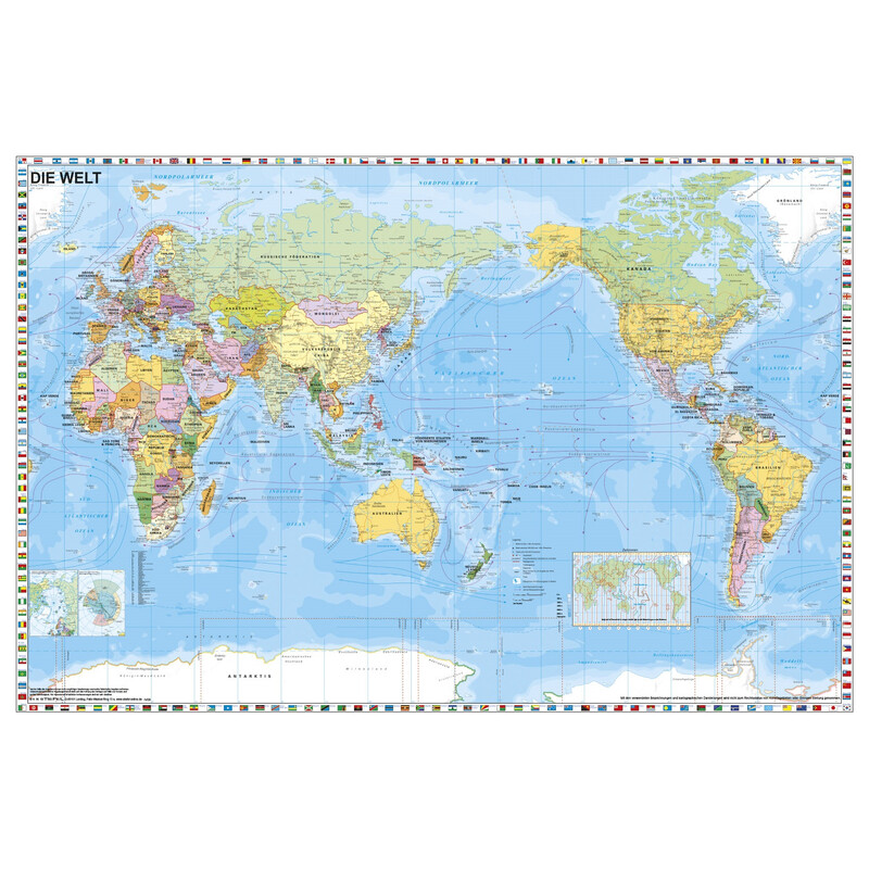 > Stiefel Harta lumii Planiglob, centrat pe Pacific cu marginea drapelului (98 x 68 cm)