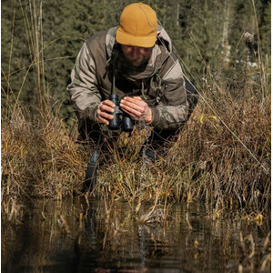 Minox X-TOUR 8x26 este cel mai compact binoclu din serie și este ideal ca binoclu ușor pentru vânătoare, drumeții și călătorii. Cu o mărire de 8x și lentile de 26 mm, acesta oferă o imagine stabilă și ușor de controlat – perfectă pentru observații rapide din mână. În ciuda dimensiunilor reduse, optica ED oferă o imagine luminoasă, contrastată, cu redare a culorilor în natura lor, chiar și în condiții de lumină dificile. Carcasa robustă din magneziu este acoperită cu cauciuc, umplută cu azot și impermeabilă conform IPX7, astfel încât binoclul rămâne fiabil chiar și în condiții de ploaie, ceață și schimbări de temperatură. Cu o greutate de numai 325 g, se potrivește cu ușurință în buzunarul jachetei sau rucsacului, fiind astfel binoclul ideal pentru activități în outdoor.