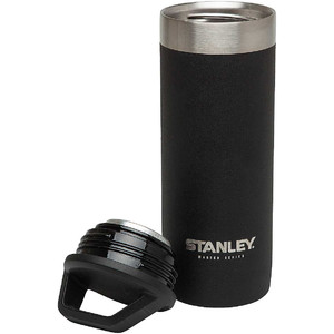 Cana Stanley Master Vacuum Mug 532 ml stabilește noi standarde în materie de robustețe, performanță și design tehnic. Grosimea peretelui corpului acoperit cu un strat negru mat din oțel inoxidabil 18/8 este de 1,0 mm, ceea ce, în combinație cu izolația cu vid QuadVac cu patru straturi, asigură performanțe excelente: până la 12 ore cald sau până la 16 ore rece. Datorită închiderii 100% etanșe, cana poate fi fixată ușor pe bagaje sau transportată cu un singur deget. În plus, se potrivește în aproape toate sistemele de prindere pentru mașini. Toate componentele sunt rezistente la mașina de spălat vase și nu conțin BPA.