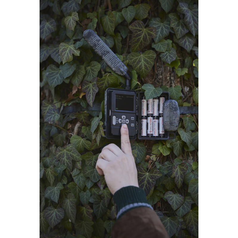 Fixați camera pentru viața sălbatică în locul dorit cu ajutorul curelei, cablului de siguranță sau filetului pentru trepied (nu sunt incluse în livrare) și începeți monitorizarea direct cu ajutorul funcției Plug-and-Play. Bateriile, cardul SD și cartela SIM sunt deja instalate.