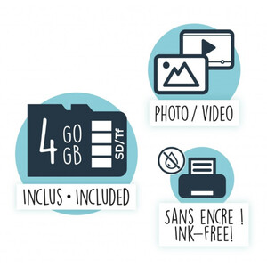 În pachet sunt incluse în total 3 role de hârtie. Cu cele 2 role standard se pot imprima până la 100 de fotografii, iar cu rola adezivă se pot imprima 20 de autocolante. Dimensiunea fotografiilor este de 7 x 5,5 cm.