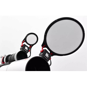 O mască flatfield creează o suprafață albă cu o luminozitate definită. Pur și simplu așezați masca pe optica telescopului și fotografiați suprafața albă. Prin această așa-numită înregistrare flatfield, puteți înregistra distribuția exactă a luminozității sistemului dvs. optic și puteți corecta cursul luminozității fotografiilor dvs. astronomice în timpul procesării imaginilor.