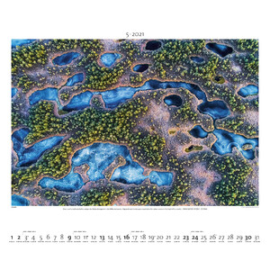 Formatul generos al acestui calendar de perete pune în valoare cele 12 fotografii aeriene impresionante. Calendarul de dedesubt este conceput în mod deliberat într-un stil discret, pentru a lăsa mult spațiu motivelor.