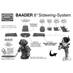 Placă cu coadă de porumbel de 203 mm (8"), lungă de 500 mm, potrivită pentru GM 3000 și GM 4000, pentru atașarea propriilor telescoape.