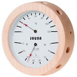 Higrometru sintetic, combinat cu termometru bimetalic pentru măsurarea umidității și temperaturii aerului în saună.