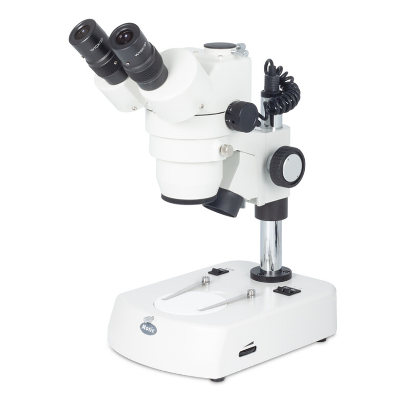 Confortul și versatilitatea în utilizare fac din această serie cea mai vândută serie de microscoape stereo Motic. Optica zoom excelentă (10x-40x) oferă rezultate brillante și corecte din punct de vedere lateral, de la imaginea de ansamblu până la mărirea maximă. Claritatea imaginii este menținută pe întreaga plajă de zoom. Trepiedul compact N2GG, precum și trepiedul FBGG din seria SMZ 140/143 sunt echipate cu o iluminare halogenă puternică de 12V/10W pentru lumină de fund și lumină transmisă, trepiedul N2LED oferă o iluminare LED de 3W pentru lumină de fund și lumină transmisă.