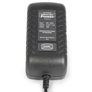 Noul transformator Outdoor-Telescope-Power oferă, prin intervalul de tensiune AC universal de la 90 la 260V, o tensiune DC de 12.8 volți/1.5A și chiar la temperaturi scăzute extreme tensiunea nu poate să scadă atât încât să afecteze componentele electronice sau motoarele unei monturi de telescop. Cu un curent continuu de 1.5 A/19 wați și la o sarcină totală este suficientă putere de rezervă, chiar dacă pe montură sunt instalate instrumente grele și se fac schimbări mari de încărcătură. În plus față de tensiunea de bază mărită intervalul termic de lucru cuprins între -25° și +40° este optim pentru aplicațiile outdoor. Datorită cablului de alimentare de 2.5m dintre transformator și conectorul în unghi adaptorul de rețea nu va sta în calea dumneavoastră și va putea fi lăsat aproape de podea. Conectorul în unghi protejează electronica telescopului de deteriorări la mufă iar adaptorul de rețea împotriva rupturii cablului sau alte deteriorări. Atunci când călcați accidental pe cablu, mufa nu se va rupe lateral din telescop ci se va desprinde conexiunea de la punctul de cuplare din fața conectorului în unghi.