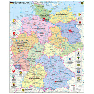 > Stiefel Harta Deutschland politisch mit Wappen (97 x 119 cm)