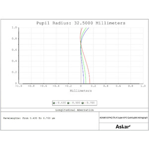Spre deosebire de celelalte modele din serie, modelul 65PHQ este echipat cu un design cu cinci lentile (quintuplet). Trei lentile, dintre care două din sticlă ED, formează obiectivul, iar alte două lentile din partea centrală a tubului constituie corectorul de câmp. Acest lucru permite o corecție excelentă a aberației cromatice și asigură o distorsiune extrem de redusă a stelelor la marginea câmpului vizual.