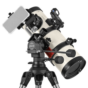 Poate că cea mai interesantă parte a setului de accesorii este adaptorul pentru smartphone. Cu ajutorul acestuia, puteți fixa propriul telefon mobil direct pe ocular și astfel puteți face fotografii cu ceea ce observați. Imortalizați peisajele craterizate ale Lunii sau fotografiați Jupiterul cu lunile sale. Declanșatoarea telecomandă Bluetooth inclusă în pachet vă asigură fotografii fără mișcări. Împărtășiți fascinația dvs. pentru cerul înstelat cu familia și prietenii. Nu poate fi mai simplu de atât.
