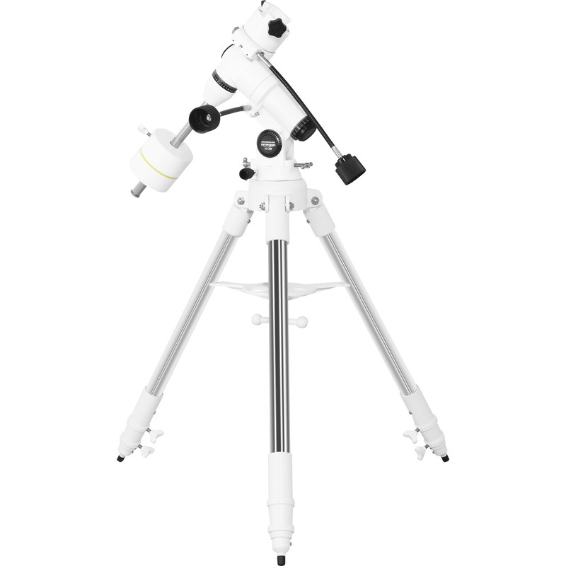 Montura are design ecuatorial. Odată aliniate montura poate urmări stele, planete si alte obiecte astronomice rotindu-se pe o singură axă. Avantajul este că dvs doar trebuie să urmăriti telescopul folosind acea singură axă, făcând mai usoară captarea obiectelor în câmpul vizual. Deci veti avea ore de observare relaxată si poate chiar să reusiti să captati întreaga familie în hobby-ul dvs.