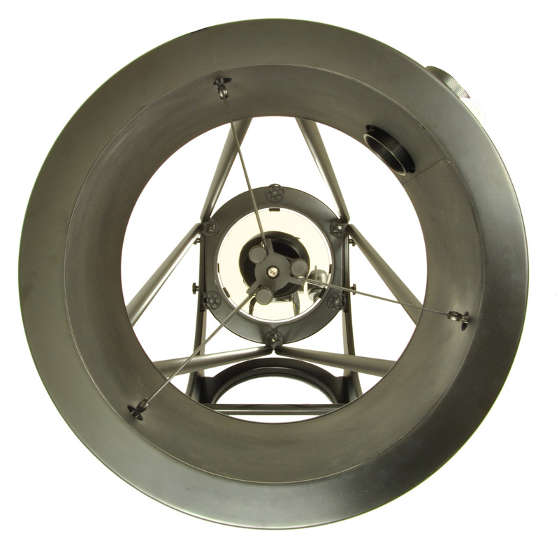 - Ușor de utilizat: Plăcuțele de teflon și un rulment special pe placa de bază permit urmărirea în mare parte fără frecare, chiar și la o mărire mare. Rezistența bazei (azimut) poate fi reglată în funcție de preferințele individuale. Capacul poate fi montat în două poziții, astfel încât vederea în focuser să fie optimizată pentru zenit sau orizont. Deoarece oglinda principală este așezată cât mai jos posibil, înălțimea maximă a vederii ocularului ar putea fi menținută cât mai mică posibil.