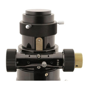 - Focuserul nou proiectat de 2,5" susține chiar și aparate foto grele, fără a se înclina. Acesta a fost conceput special pentru utilizarea fotografică. Reglarea se face printr-o cremalieră și un pinion fără alunecare. Șurubul zimțat de pe bază blochează reglajul și garantează astfel că poziția de focalizare este menținută perfect ore în șir. De asemenea, puteți fixa poziția tubului focalizatorului cu ajutorul unui șurub zimțat de pe partea superioară. Focuserul găzduiește corectorul cu 3 elemente și are un filet extern de nivel ZEISS M68x1 pe partea camerei. Reducerea la M48x0,75 este, de asemenea, atașată la acest filet.