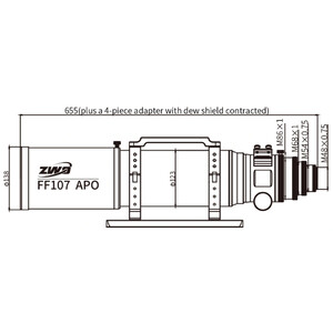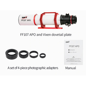 ZWO FF107 APO este un apocromat cu patru lentile, special conceput pentru cerințele ridicate ale astrofotografiei, dar excelent și pentru observatiile vizuale. Structura sa optică este formată din patru elemente de lentile, dintre care două sunt sticle ED cu dispersie extrem de redusă. Această combinație asigură o corectare excelentă a culorilor, stele extrem de clare până la marginea cercului de imagine de 44 de milimetri și un câmp de imagine complet plan – fără a fi nevoie de un aplatizator suplimentar.