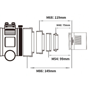 Design cu auto-aplatizare Nu aveți nevoie de un aplatizator suplimentar (aplatizator de câmp). De asemenea, nu este necesar să respectați un anumit backfocus. Puteți conecta pur și simplu orice accesoriu dorit, atâta timp cât acesta se află în focalizare. Pentru observatiile vizuale, este disponibilă o lungime focală de 120 mm pentru oglinzi zenitale sau alte accesorii.