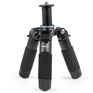 Cu conexiunea sa cu filet de 3/8'', puteți utiliza trepiedul de masă într-o varietate de moduri, atât pentru observațiile dvs. pe cer cu un smart telescope, cum ar fi ZWO Smart Telescope AP 50/250 Seestar S50 sau ZWO Smart Telescope AP 30/150 Seestar S30, cât și cu camera dvs. folosind adaptorul de 1/4'' furnizat. Atunci când nu este utilizat, adaptorul este pur și simplu înșurubat pe partea laterală a trepiedului și este perfect depozitat până la următoarea utilizare. Materialul trepiedului de masă este un aliaj ușor de aluminiu, ceea ce face ca acesta să cântărească doar 570 g. Trepiedul de masă impresionează și prin designul său compact. Când este pliat, are doar 14 cm lungime! Picioarele extensibile în patru direcții sunt reglabile în mod infinit și flexibil prin simpla rotire. Cu coloana centrală, care este de asemenea reglabilă, puteți atinge o înălțime maximă de 42 cm. Fermoarele pliabile de pe picioare asigură stabilitatea. Conexiunea de 3/8'' sau 1/4'' de pe partea inferioară a coloanei centrale oferă acel ceva în plus - permițându-vă să capturați perspective suplimentare și foarte speciale cu camera dvs. Pentru flexibilitate suplimentară, consultați și Omegon Cap de trepied cu bila Pro OM8.