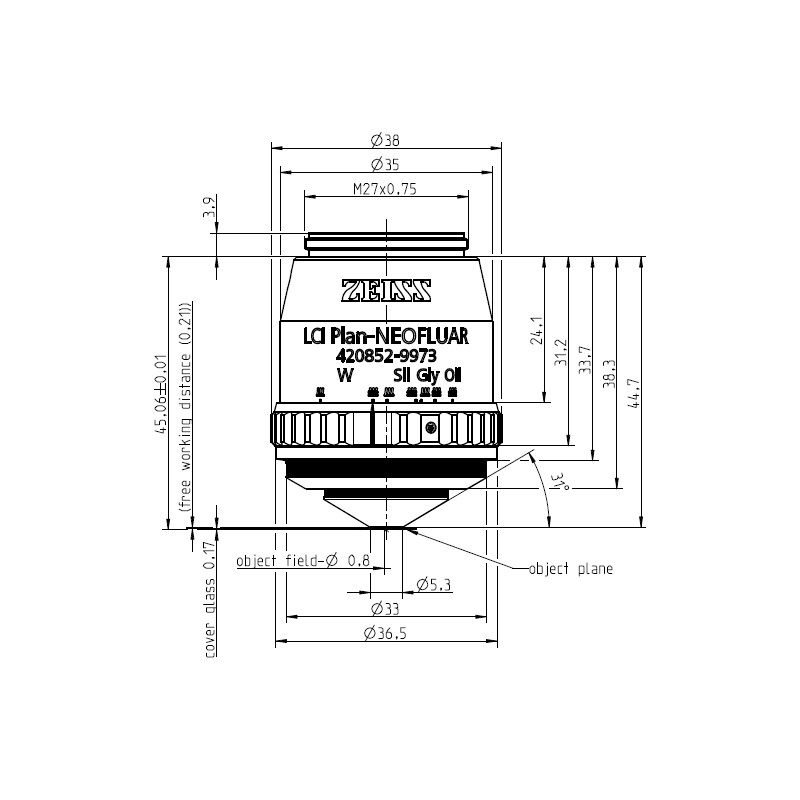 > ZEISS Objektiv LCI Plan-Neofluar 25x/0,8 Imm Korr DIC wd=a=0,21mm